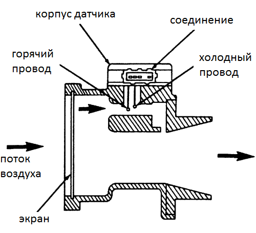 Когда нить ДМРВ начинает остывать, автоматика блока управления увеличивает ток нагрева. Благодаря этим перепадам происходит генерация сигнала на компьютер автомобиля.