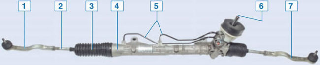 - 1 и 7 — правый и левый наконечники рулевой тяги;